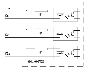 信 號 要 求 DC-280驅(qū)動器采用單脈沖控制方式。Cp、Cw、Clr信號通過光耦隔離,采用共陽極接法。為確保內(nèi)置光耦能可靠導通,要求信號提供5mA~10mA的電流。驅(qū)動器內(nèi)部已串入光耦的限流電阻1KQ,對應+5V電平。當輸入電壓較高時,可根據(jù)需要每根信號線外串電阻進行限流。例如輸入電平為+24V時,應在每個控制信號上串聯(lián)4.7KQ左右電阻。信 號 結(jié) 構(gòu) 電 流 調(diào) 節(jié) 方 法